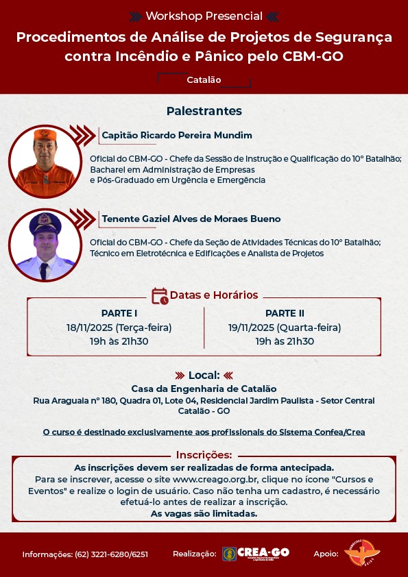 | Quem promove: CREA-GO, CON TREINAMENTOS e HEMOGO |