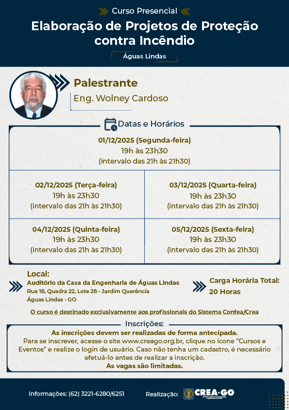 CURSO ELABORAÇÃO DE PROJETOS DE PROTEÇÃO CONTRA INCÊNDIO - ÁGUAS LINDAS*
