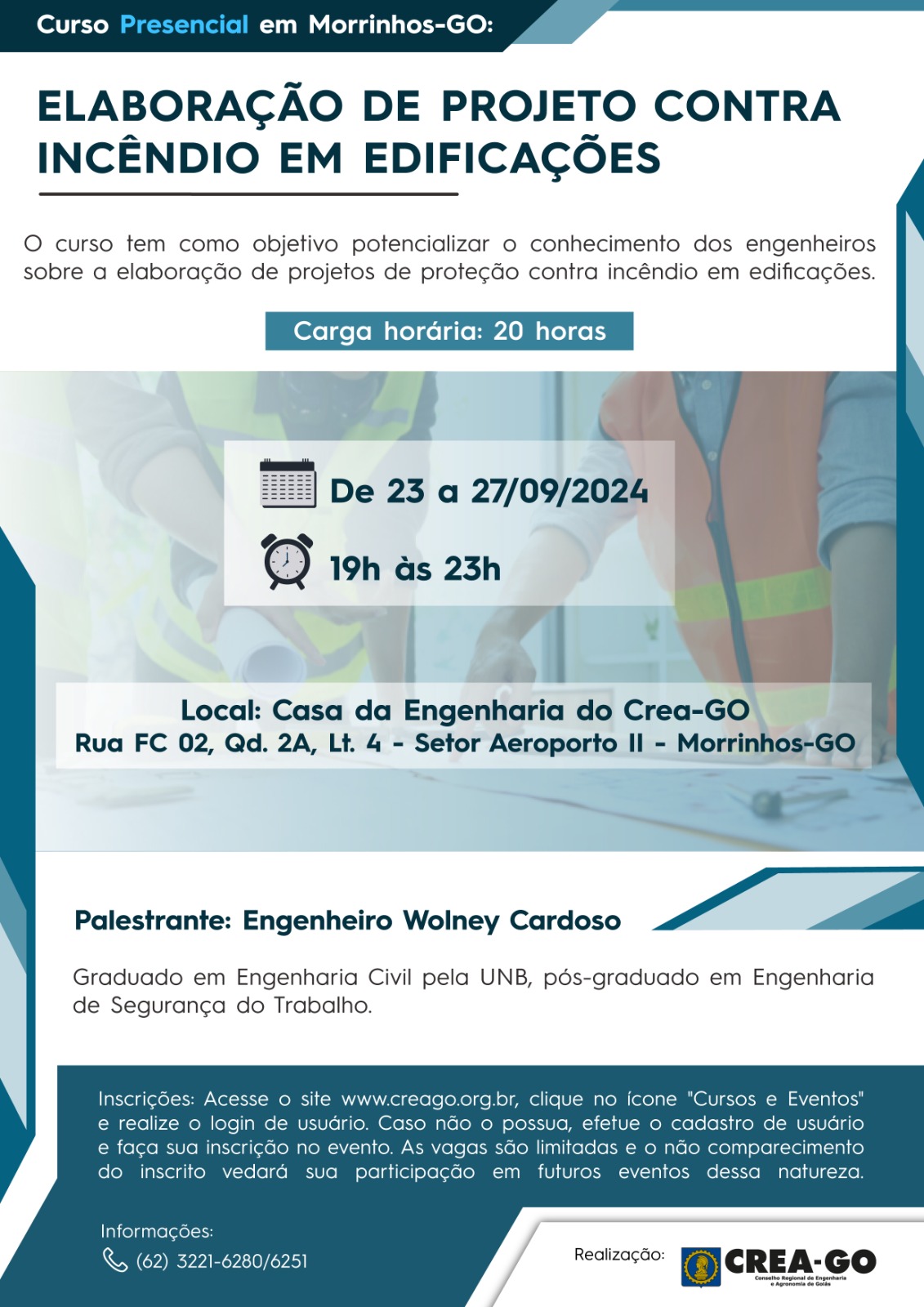 Local: Auditório da Casa da Engenharia de Morrinhos - Rua FC 02, Quadra 2A, Lote 04 - Setor Aeroporto II, Morrinhos-GO