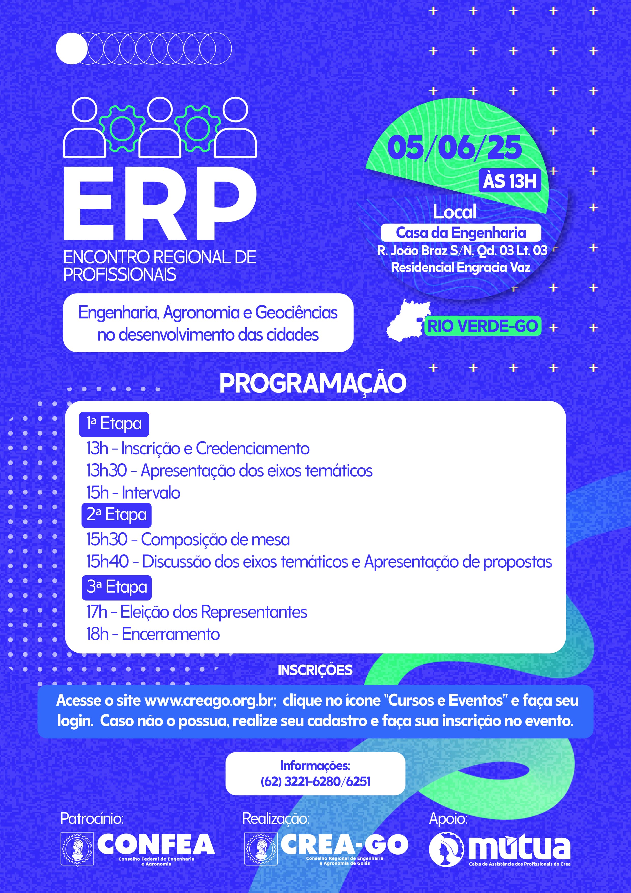 Local: Casa da Engenharia de Rio Verde - Rua João Braz S/N, Quadra 03 Lote 03 - Residencial Engracia Vaz