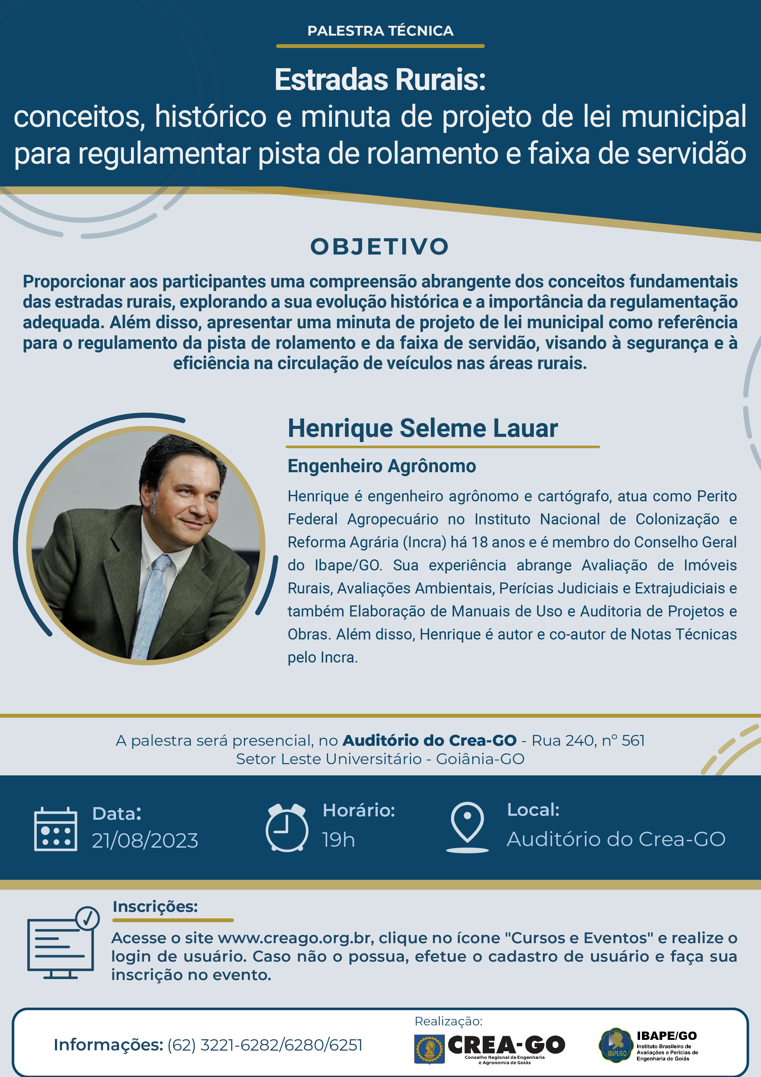 Local: Auditório do Crea-GO - Rua 240, nº 561, Setor Leste Universitário - Goiânia-GO