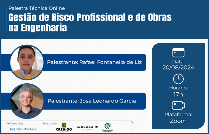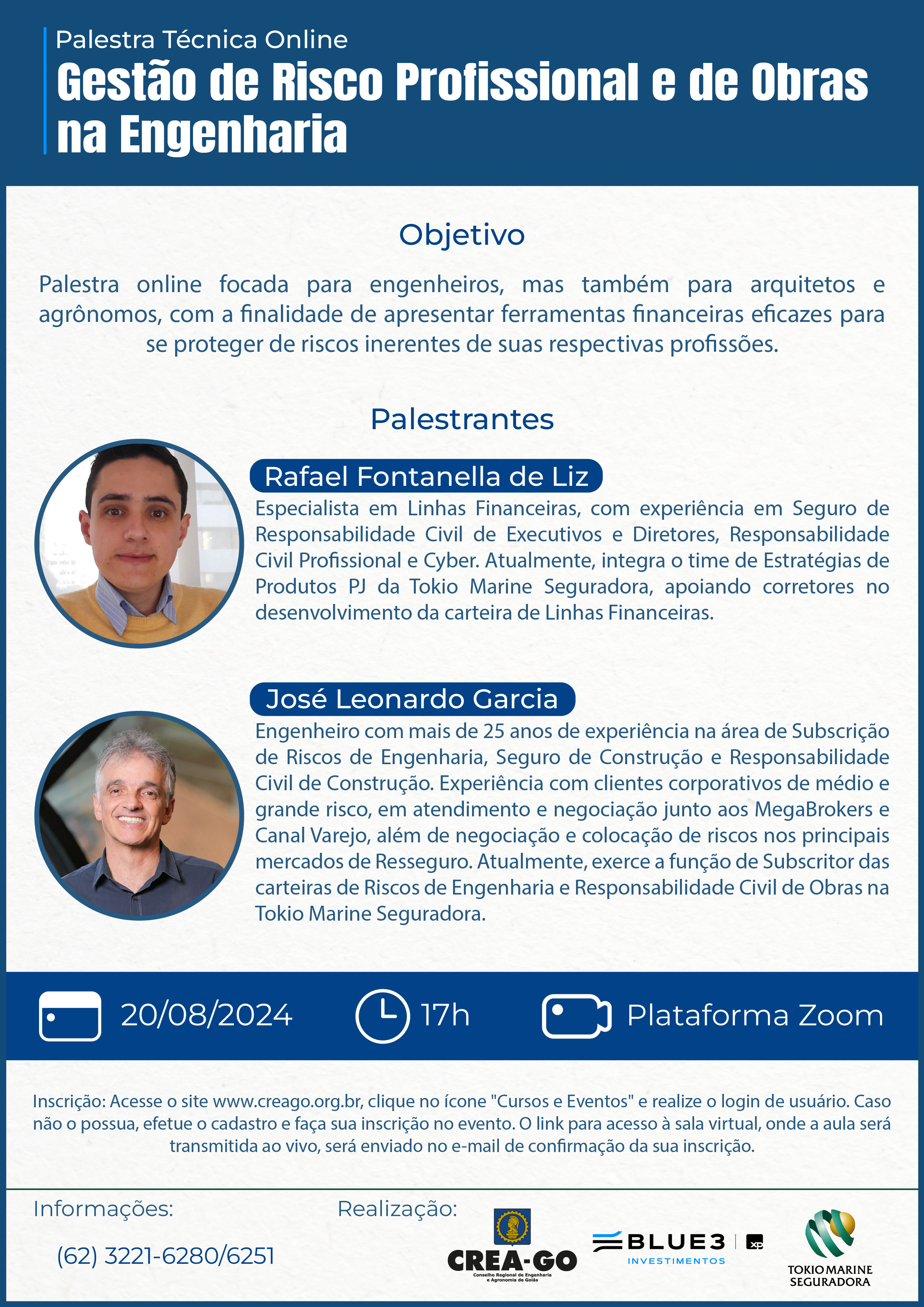 Quem Promove: CREA-GO, TOKIO MARINE SEGURADORA e BLUE3 INVESTIMENTOS