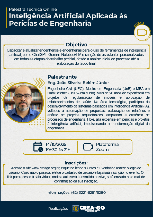 PALESTRA ONLINE: INTELIGÊNCIA ARTIFICIAL APLICADA ÀS PERÍCIAS DE ENGENHARIA