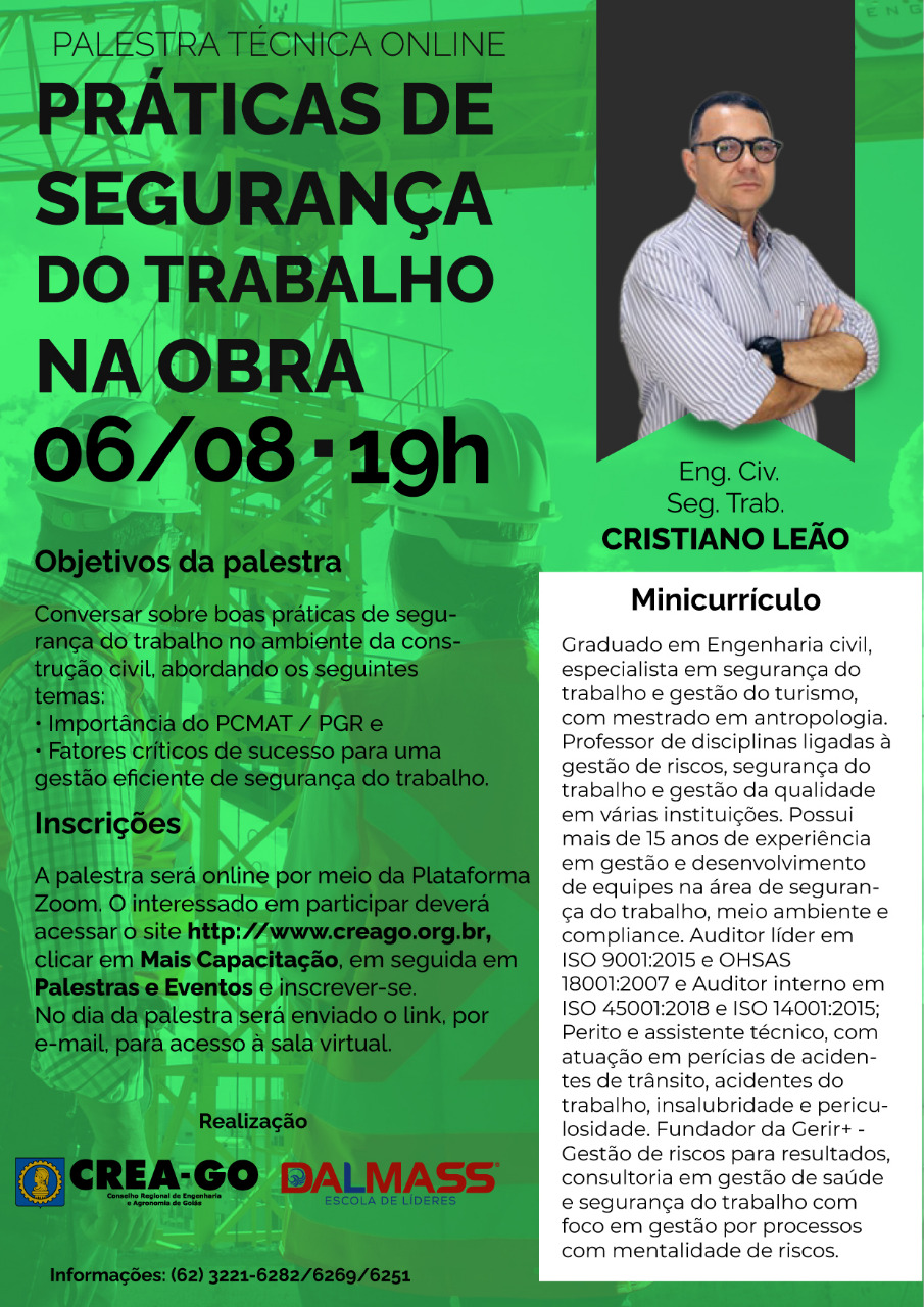 PALESTRA TÉCNICA ONLINE - PRÁTICAS DE SEGURANÇA DO TRABALHO NA OBRA