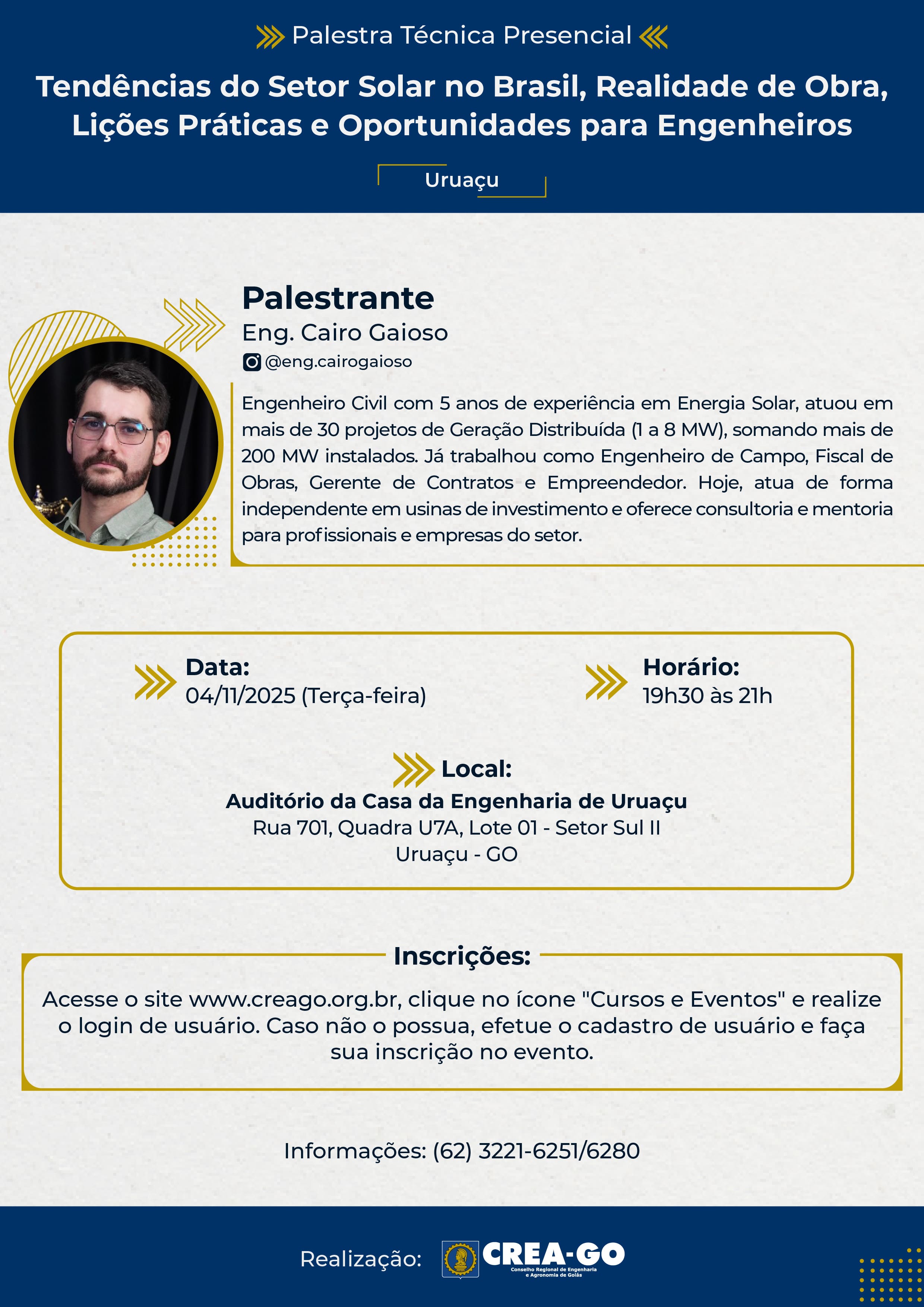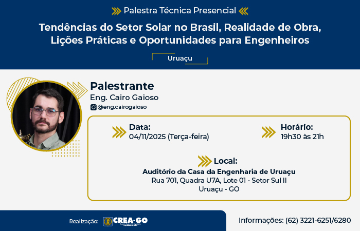 Local: Casa da Engenharia de Uruaçu - Rua 701 Quadra U7A Lote 01 - Setor Sul II